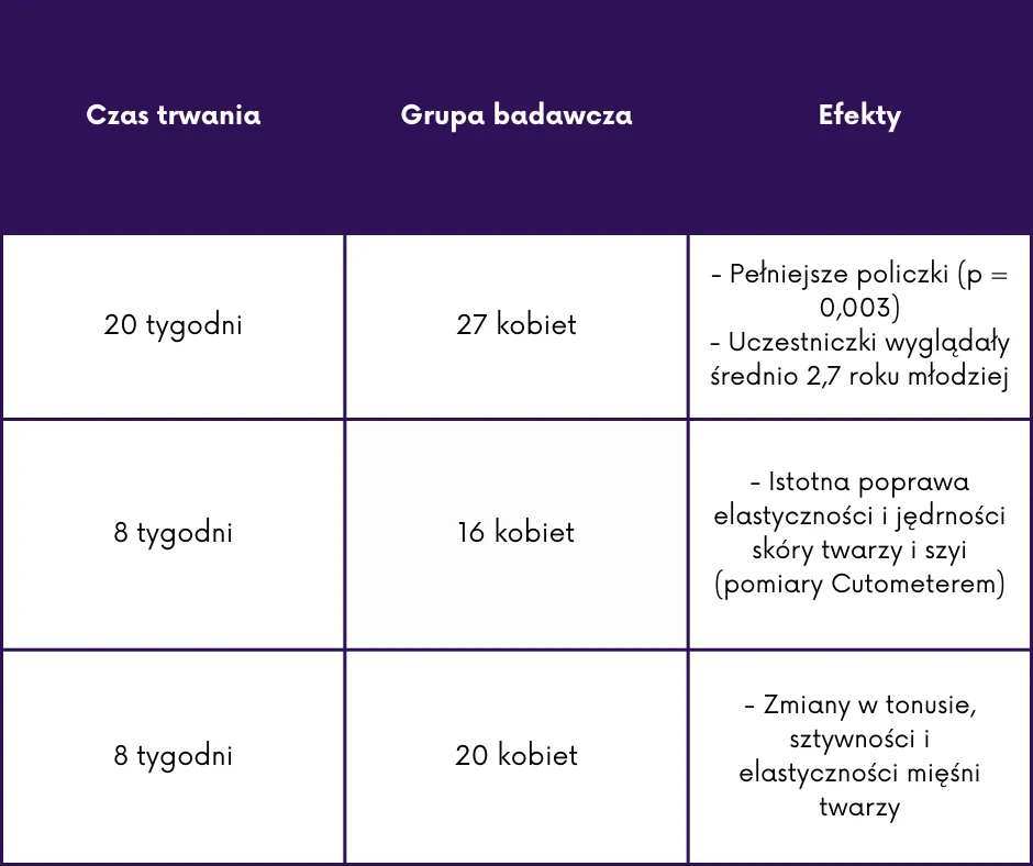 „Wszystkie analizowane badania raportowały korzystny wpływ ćwiczeń twarzy na wygląd skóry" — Aesthetic Surgery Journal (Van Borsel et al., 2014)